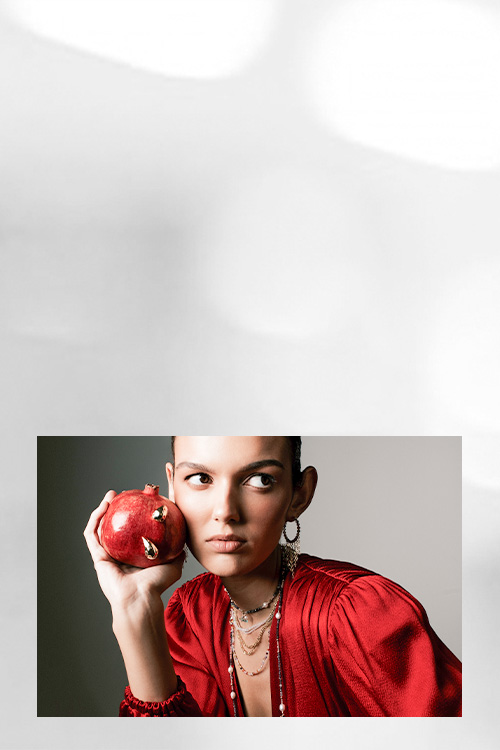 Коллекция FW25 отразила тренд на многослойность в осенних оранжевых и фиолетовых оттенках полудрагоценных камней и жемчуга